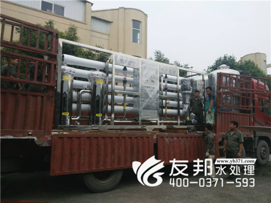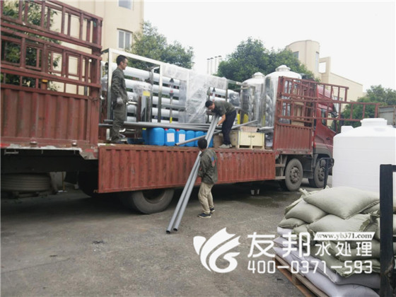 鄭州友邦憑借優質的產品和完善的售后服務再次贏得老客戶的回顧和信賴,這套型號為YB-CJS-020每小時出水20噸的純凈水設備是發往老客戶湖北地區為擴大生產使用的。