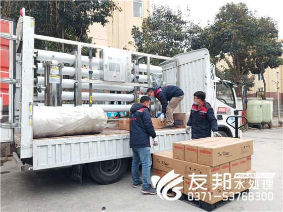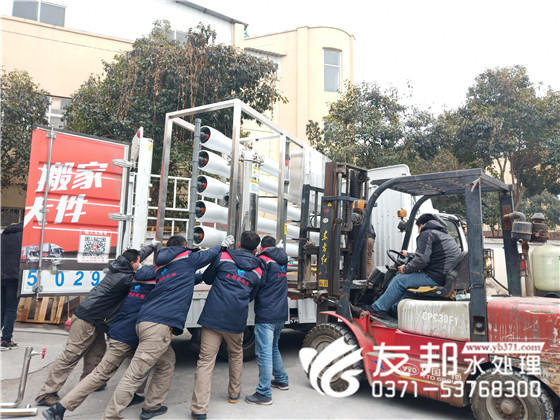陽光明媚,開啟了美好的一天。友邦工作人員辛勤勞作,即將裝車發貨的是一套15噸反滲透系統發往濮陽。反滲透設備簡單來說就是生產純凈水的設備。而純凈水又被我們廣泛用于:生活飲用、化工、醫療、養殖、種植、食品、飲料等。
